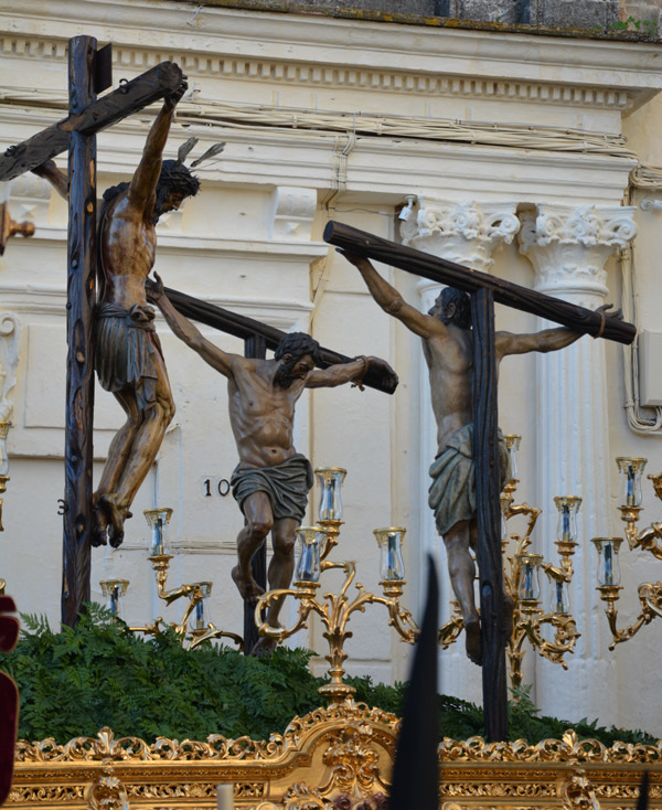 Cristo crucificado con San Dimas y Gestas a ambos lados.