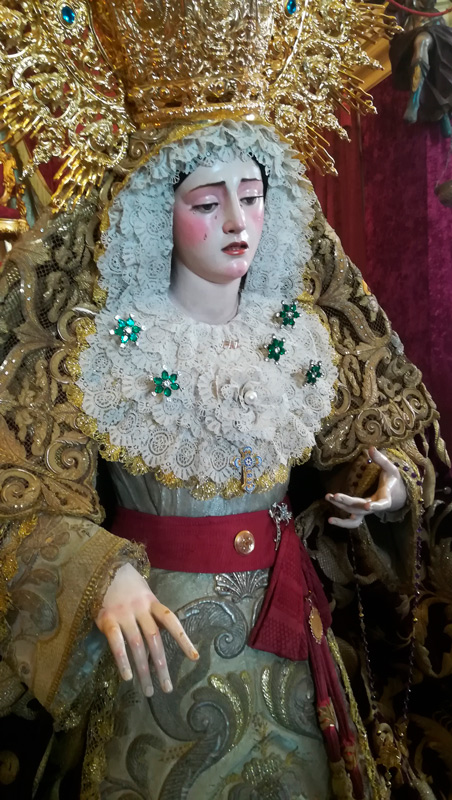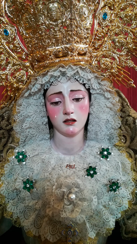 La imagen de Nuestra Señora de la Paz en su Mayor Aflicción, es obra del imaginero sevillano José Rivera García y fue adquirida en el año 1950, sustituyendo a la imagen anterior de la dolorosa, que sufrió graves daños al producirse un incendio tras prender una vela ofrecida por un devoto.