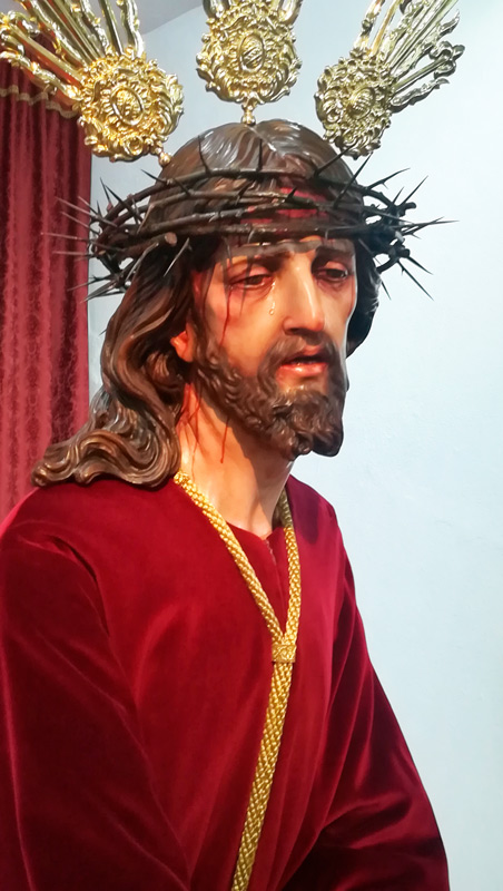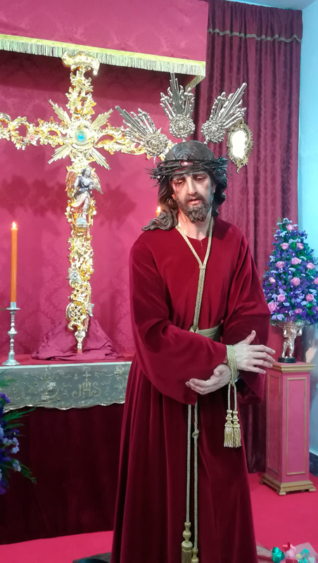 Nuestro Padre Jesús de la Salud, nazareno que abraza la cruz, tallado en madera de cedro por el escultor sevillano Fernando J. Aguado, y bendecido por el Obispo de Jerez Don José Mazuelos, el 21 de marzo del año 2012.