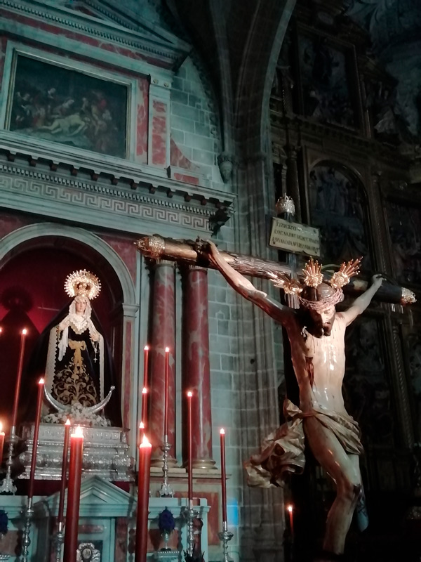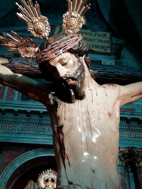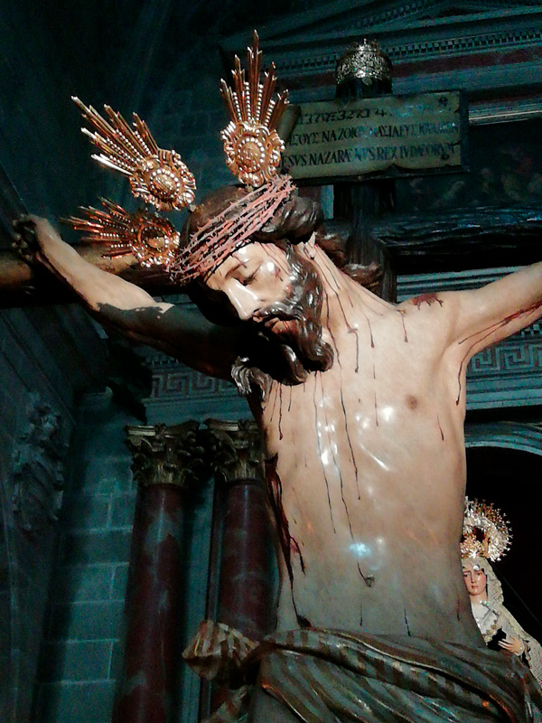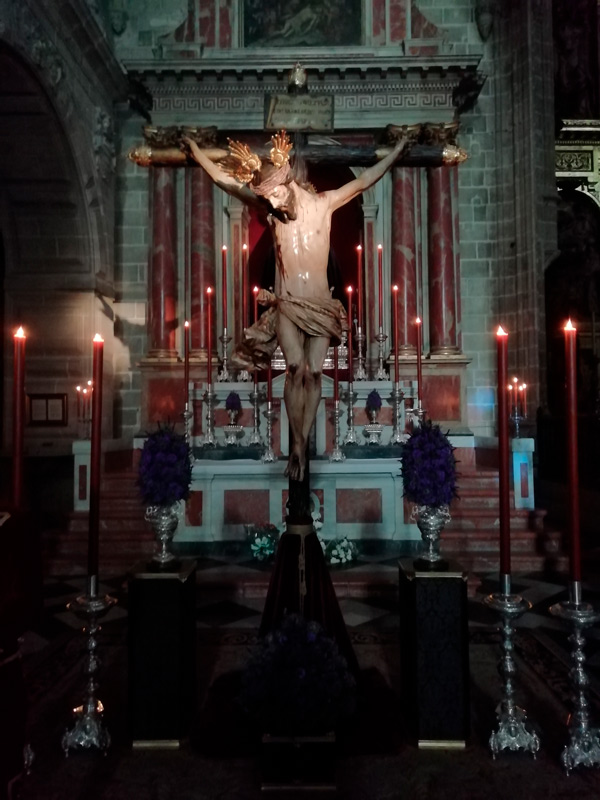 Santo Crucifijo de la Salud, imagen del siglo XVII (1647) realizada por José de Arce y tallada en madera de cedro. Restaurada en 1995 por Mari Paz Barbero.